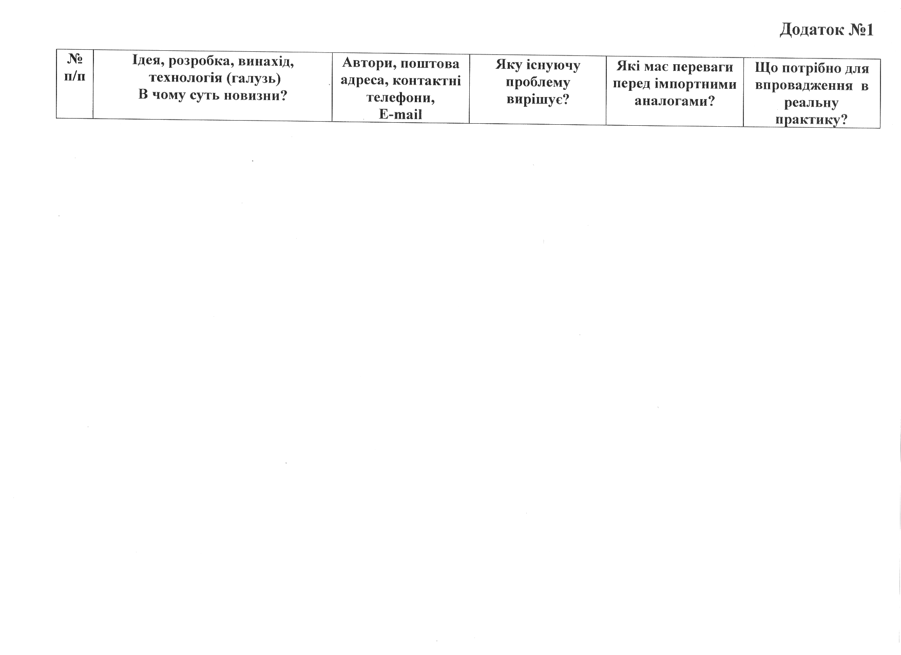 Для бажаючих взяти участь у даному проекті просимо надсилати інформацію про винаходи за формою, що додається на електронну адресу департаменту industry.loda@gmaiI.com