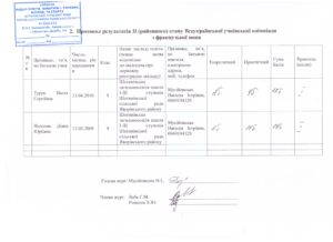 Результати Результати районних етапів Всеукраїнських учнівських олімпіади з математики, французької мови, англійської мови та екології
