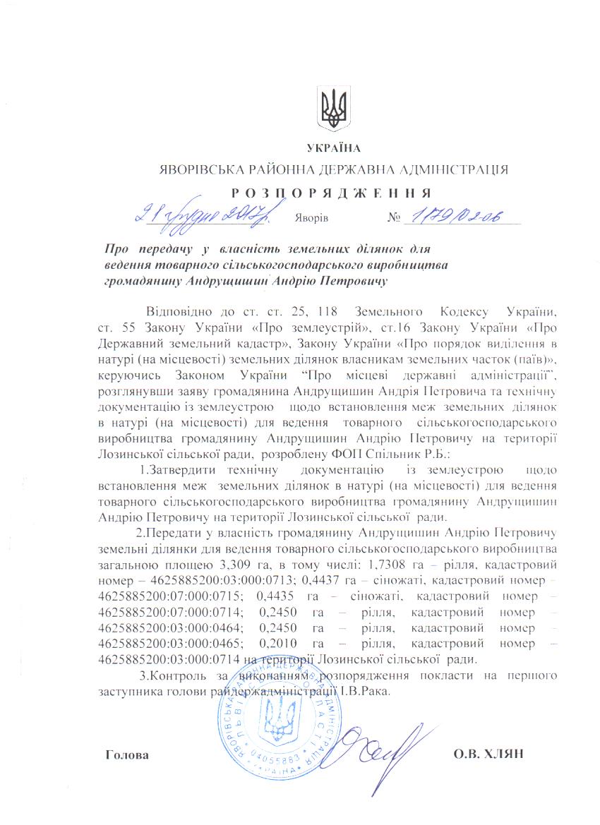 Про передачу у власність земельних ділянок для ведення товарного сільськогосподарського виробництва громадянину Андрущишин Андрію Петровичу |