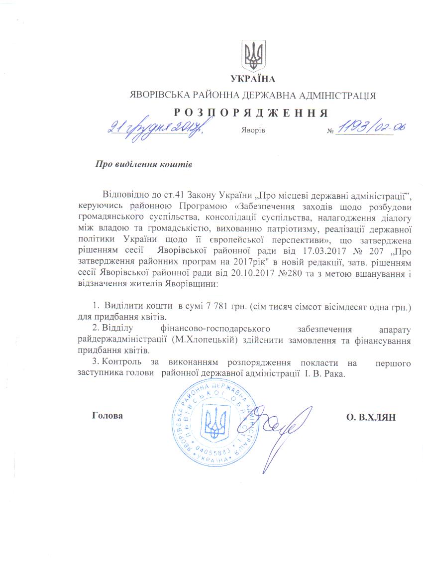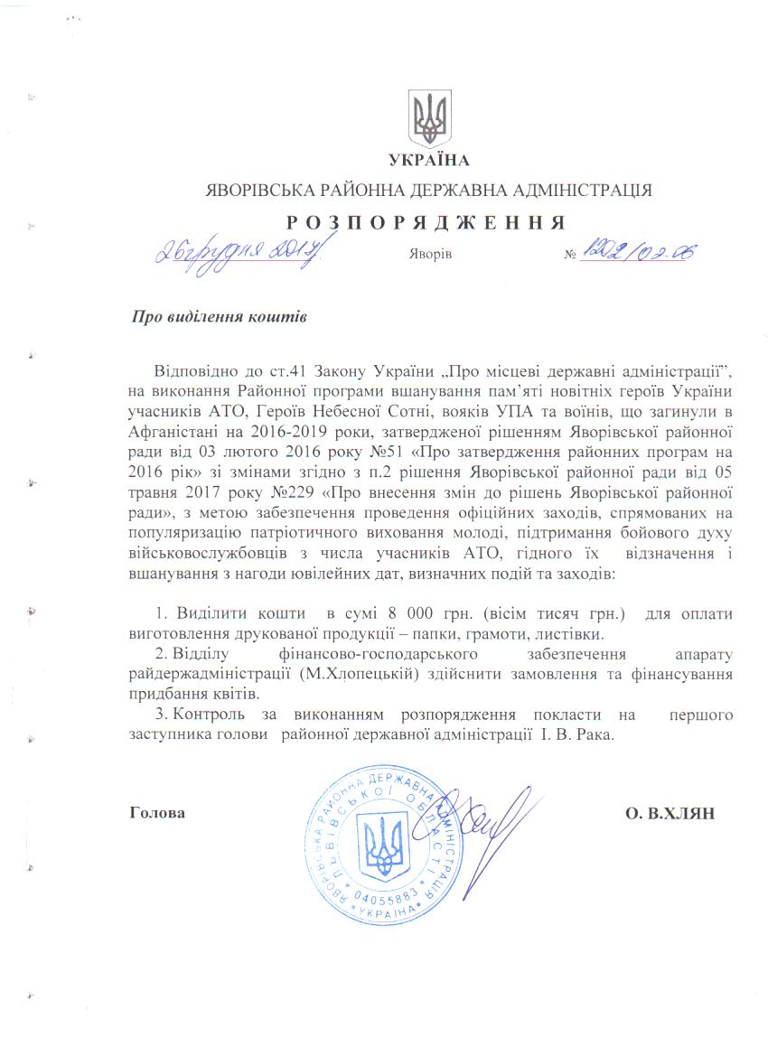 Про виділення коштів |