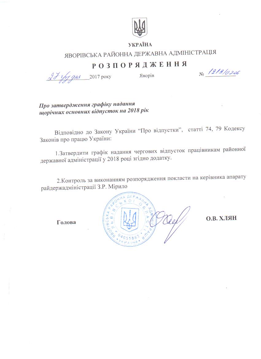 Про затвердження графіку надання щорічних основних відпусток на 2018 рік |