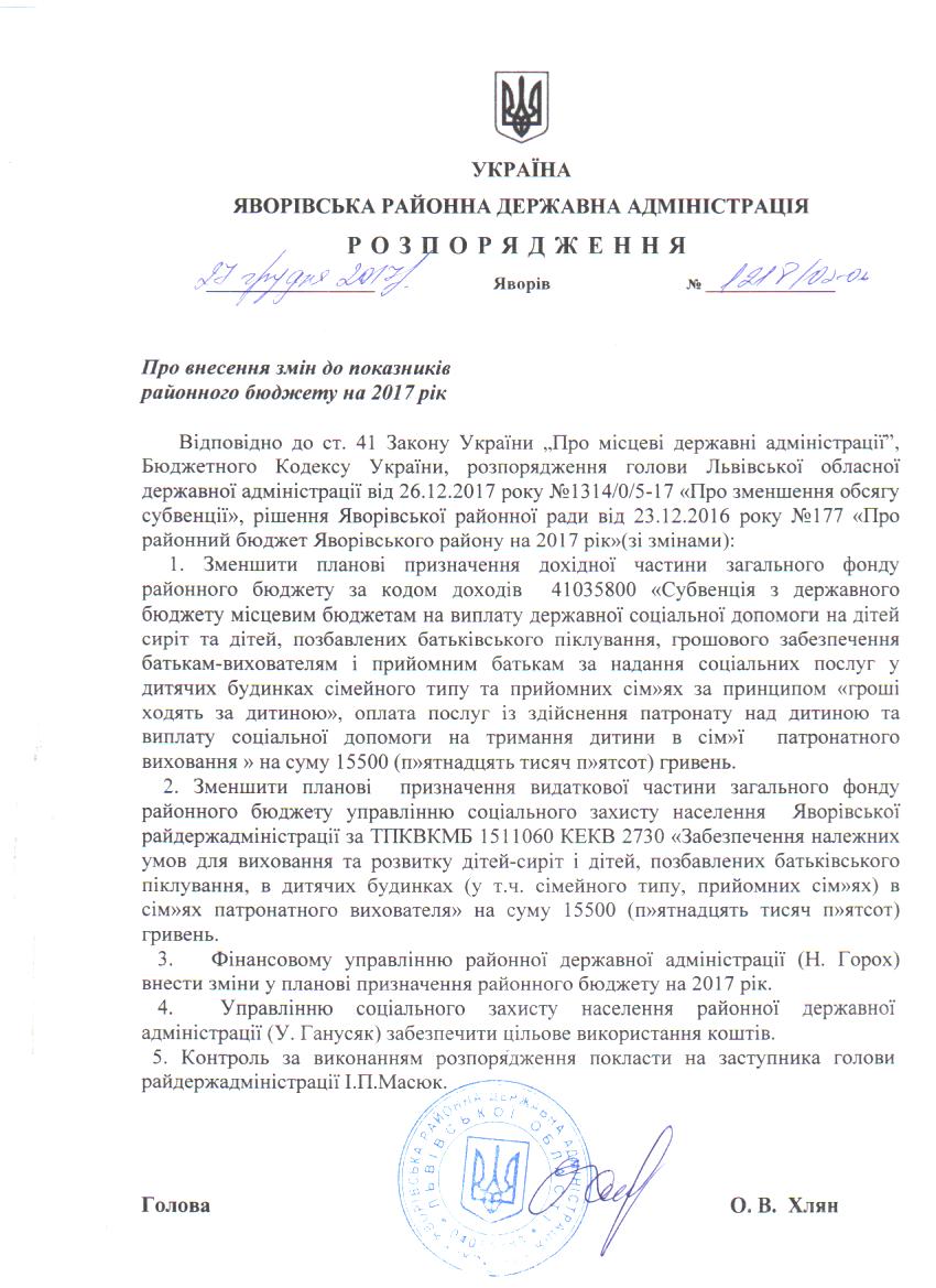 Про затвердження штатного розпису Яворівського РЦСССДМ |