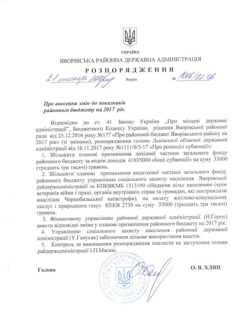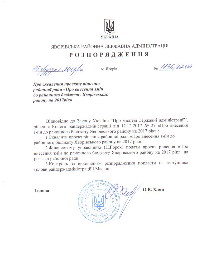 Про схвалення проекту рішення районної ради "Про внесення змін до районного бюджету Яворівського району на 2017 рік" |