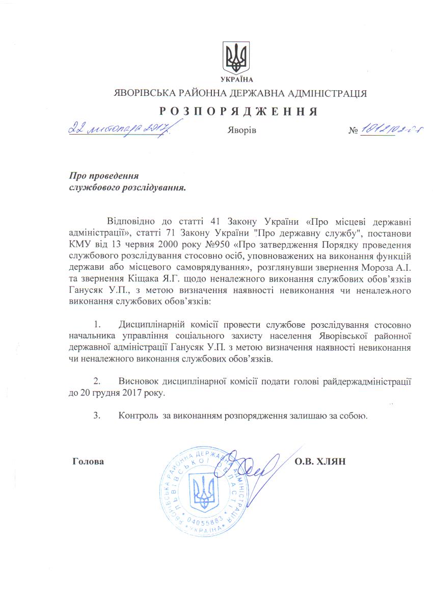 Про проведення службового розслідування |