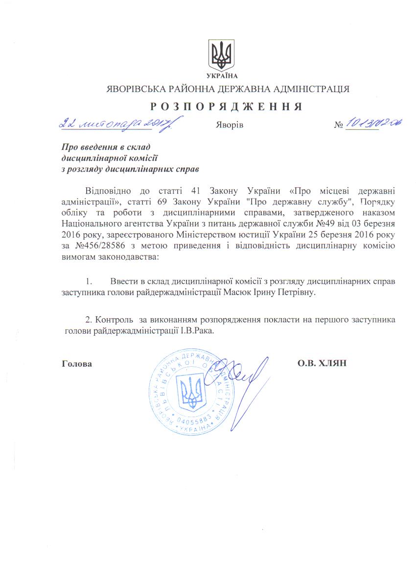 Про введення в склад дисциплінарної комісії з розгляду дисциплінарних справ |