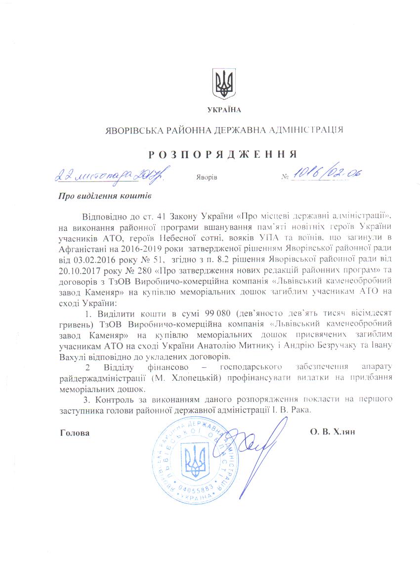 Про виділення коштів |