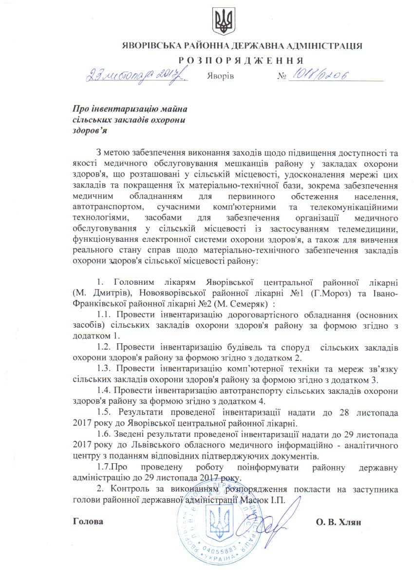 Про інвентаризацію майна сільських закладів охорони здоров'я |