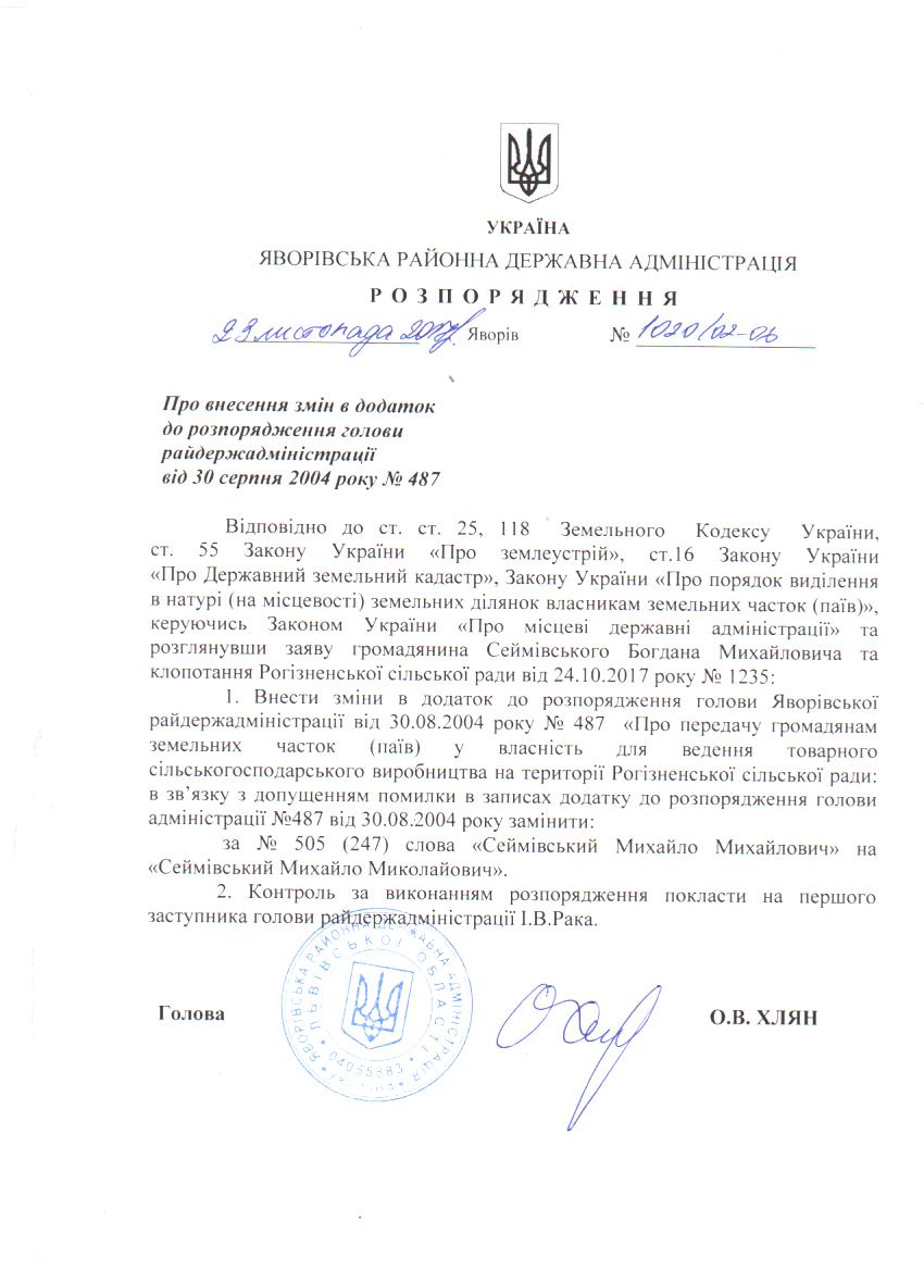 Про внесення змін в додаток до розпорядження голови райдержадміністрації від 30 серпня 2004 року №487 |