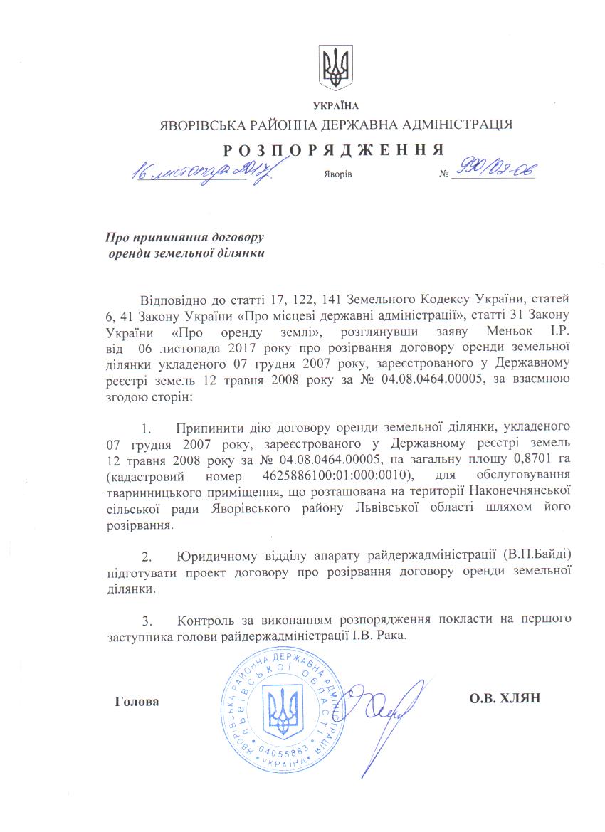 Про припинення договору оренди земельної ділянки |