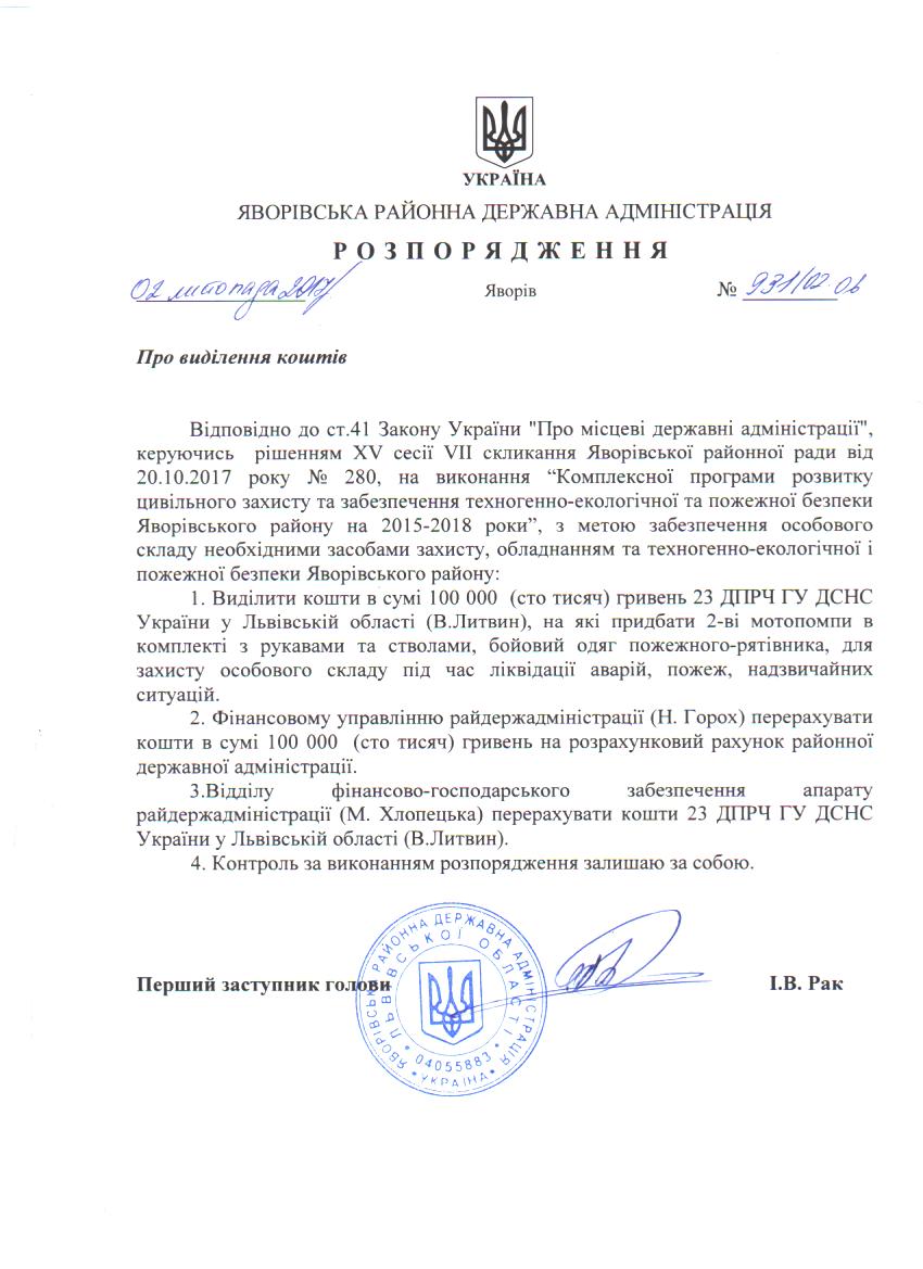 №931/02-06 2017-11-07 Про виділення коштів