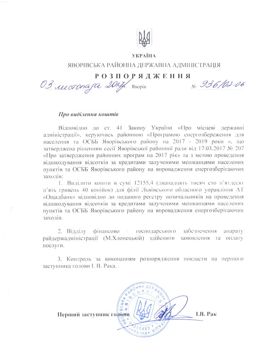 №936/02-06 2017-11-08 Про виділення коштів