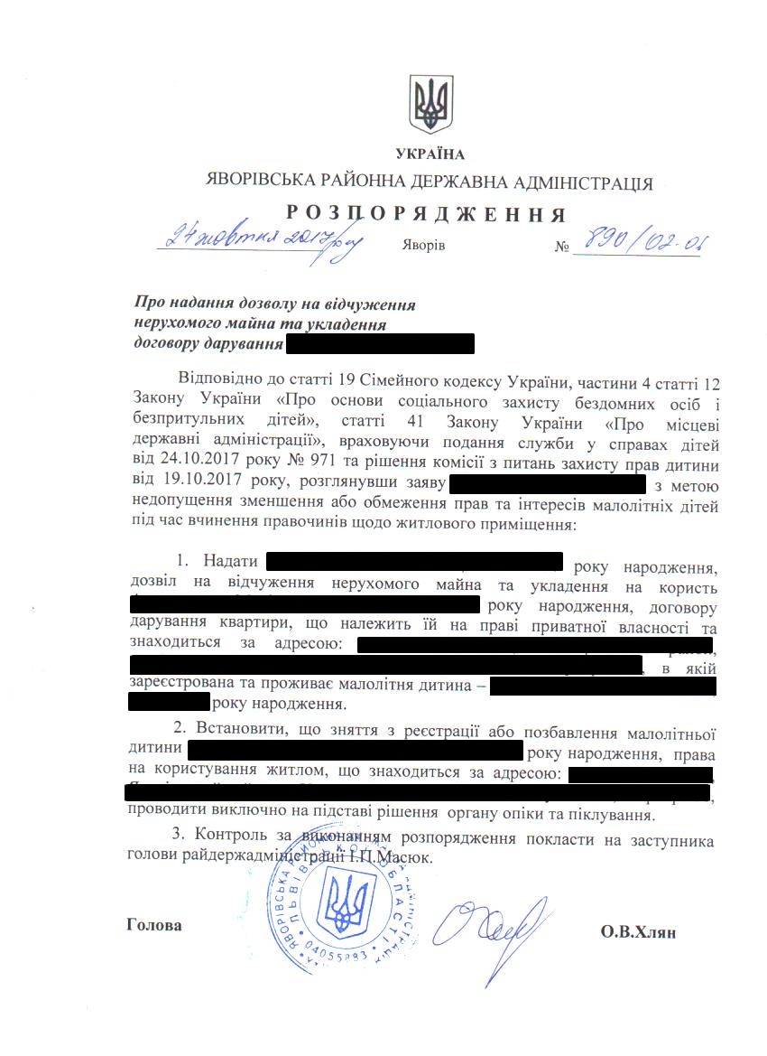 Про надання дозволу на укладення договору дарування |