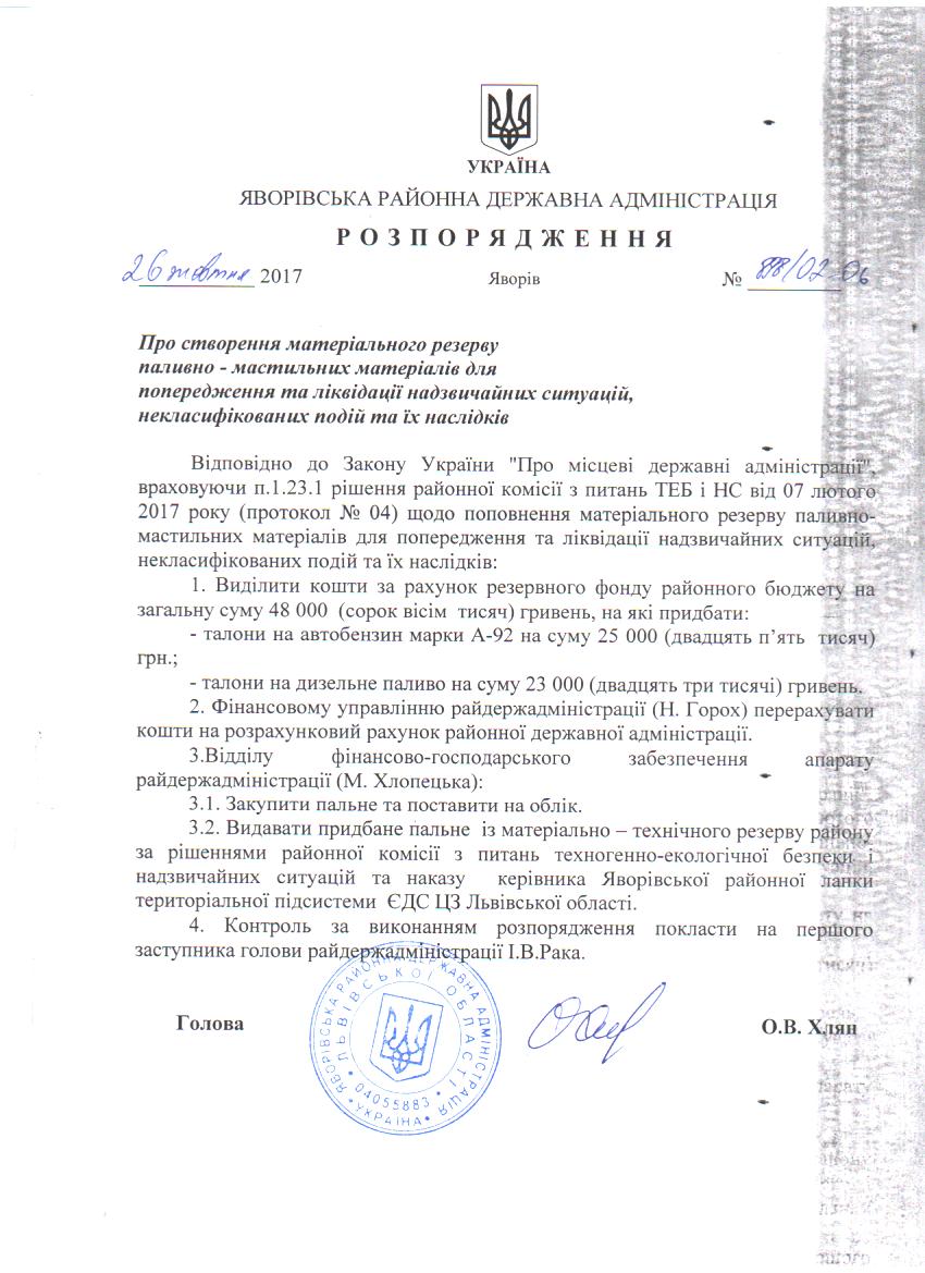 Про створення матеріального резерву паливно-мастильних матеріалів для попередження та ліквідації надзвичайних ситуацій, некласифікованих подій та їх наслідків |