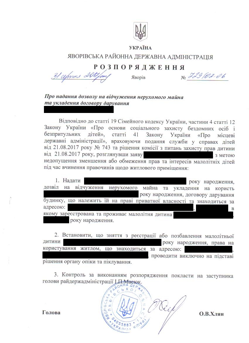 729/02-06 2017-09-05 Про надання дозволу на відчуження нерухомого майна та укладення договору дарування