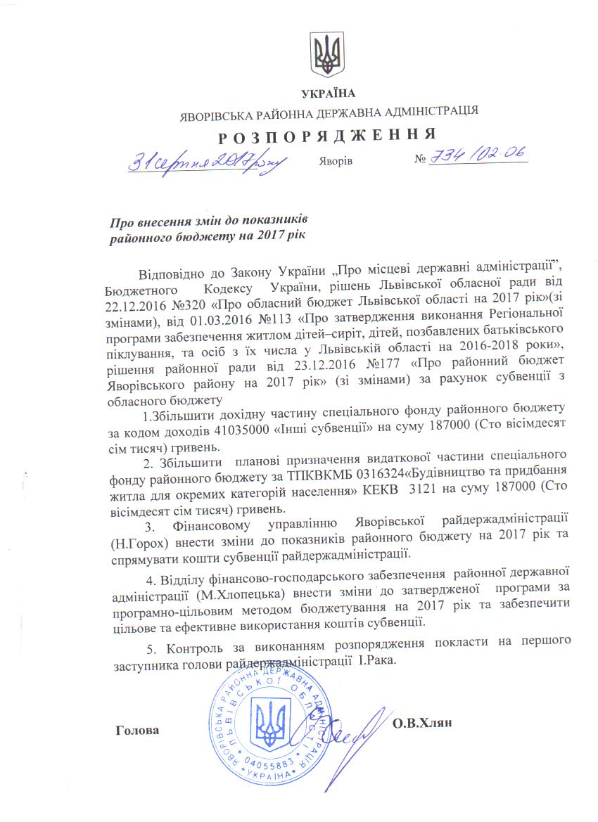 734/02-06 2017-09-05 Про внесення змін до показників районного бюджету на 2017 рік