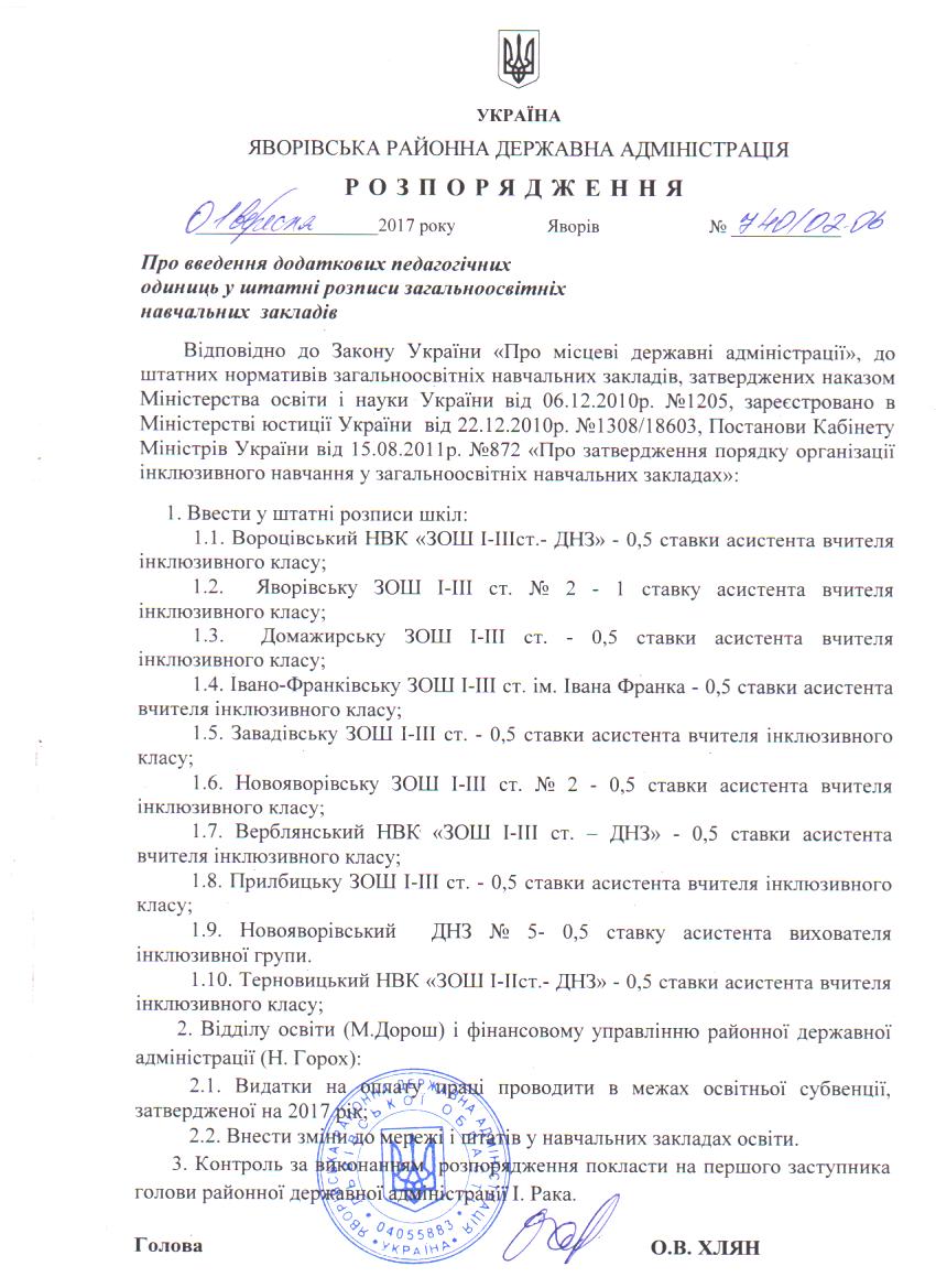 740/02-06 2017-09-07 Про введення додаткових педагогічних одиниць у штатні розписи загальноосвітніх навчальних закладів