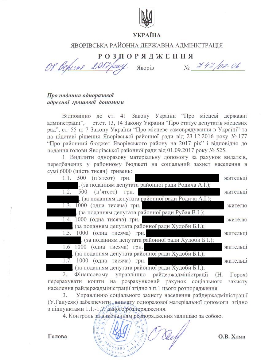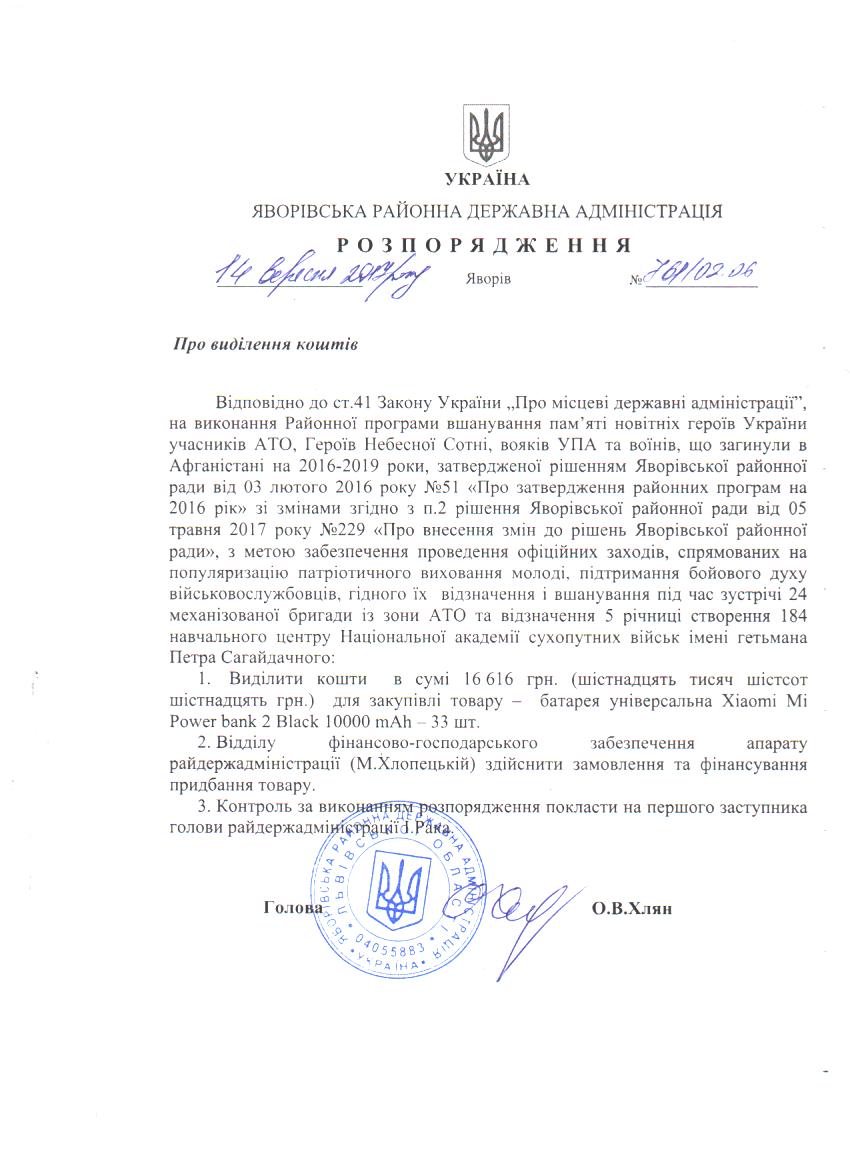 762/02-06 2017-09-22 Про надання адресної грошової допомоги мешканцям Яворівського району, яким виповнилося 100 і більше років
