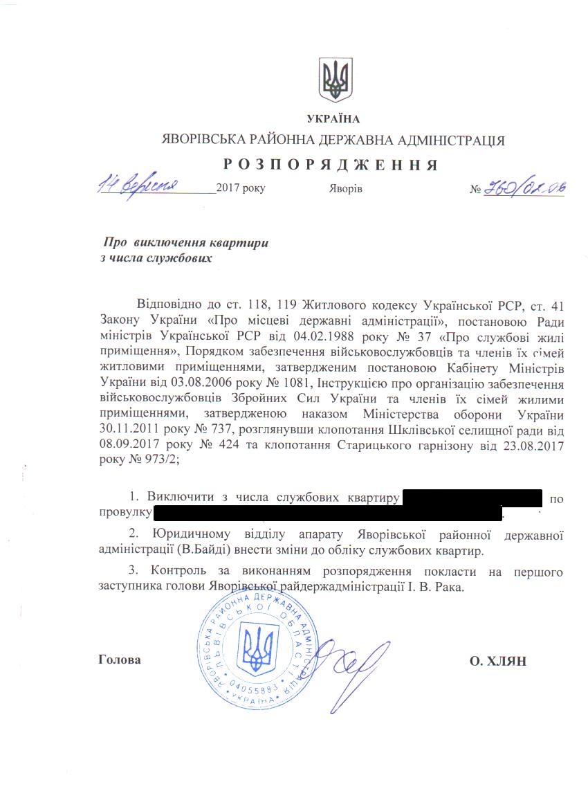 760/02-06 2017-09-21 Про виключення квартири з числа службових