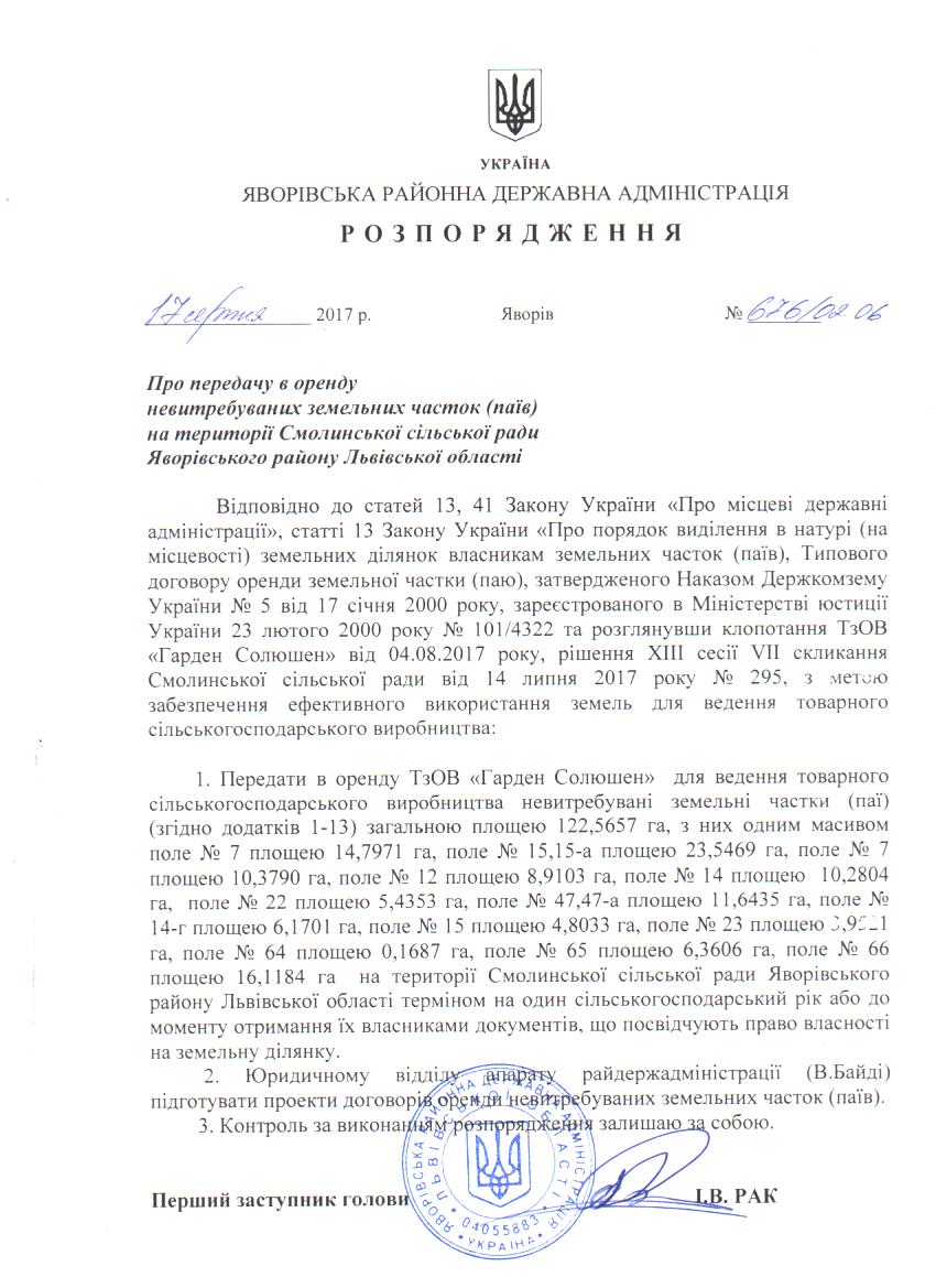 Про передачу в оренду невитребуваних земельних часток (паїв) на території Смолинської сільської ради Яворівського району Львівської області |