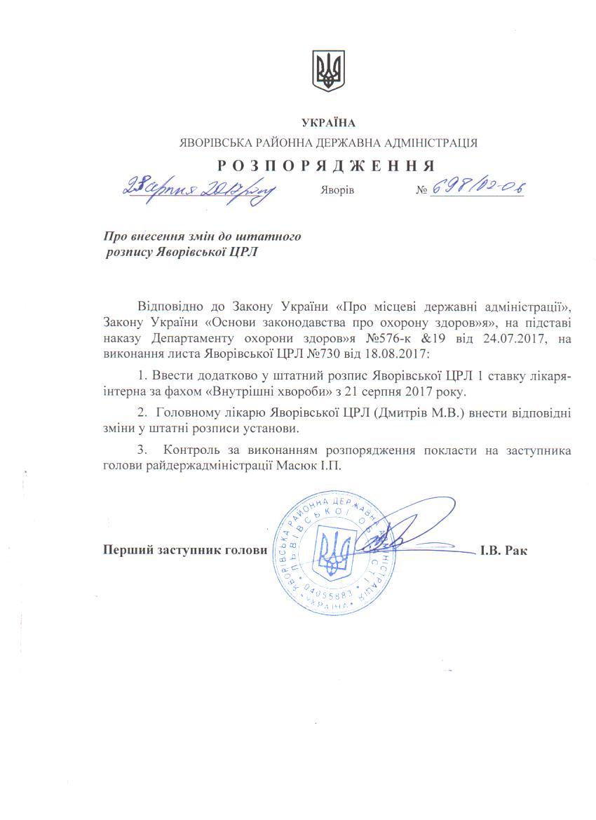 Про внесення змін до штатного розпису Яворівської ЦРЛ |
