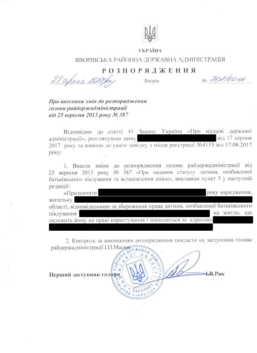 Про внесення змін до розпорядження голови райдержадміністрації від 25 вересня 2013 року №387 |
