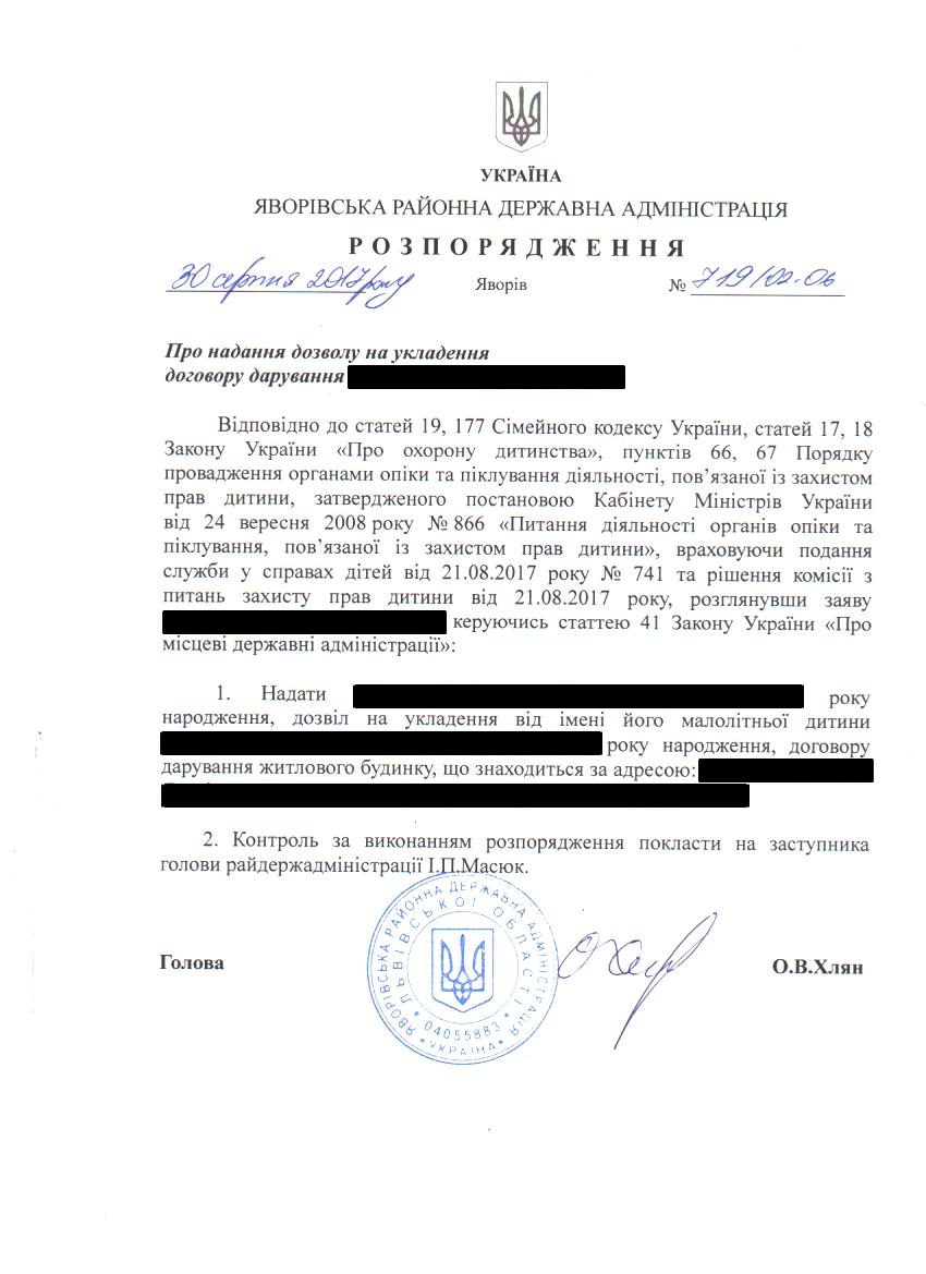 Про надання дозволу на відчуження нерухомого майна та укладення договору дарування |