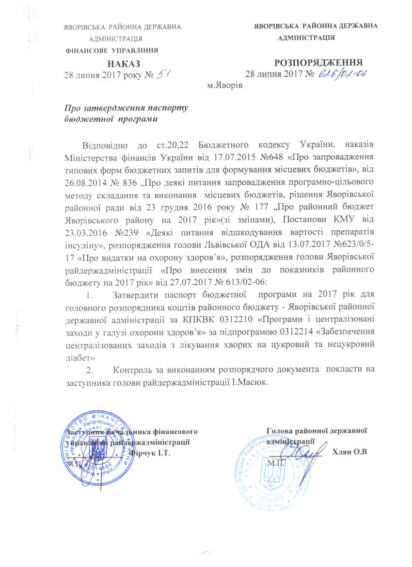626/02-06 2017-08-02 Про затвердження паспорту бюджетної програми