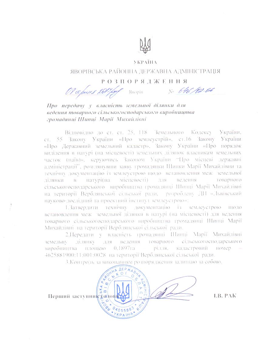 646/02-06 2017-08-11 Про передачу у власність земельної ділянки для ведення товарного сільськогосподарського виробництва громадянці Шипці Марії Михайлівні