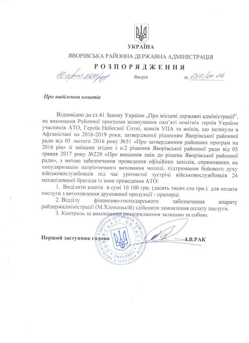 671/02-06 2017-08-21 Про виділення коштів для проведення акції "Подаруй дитині книжку"