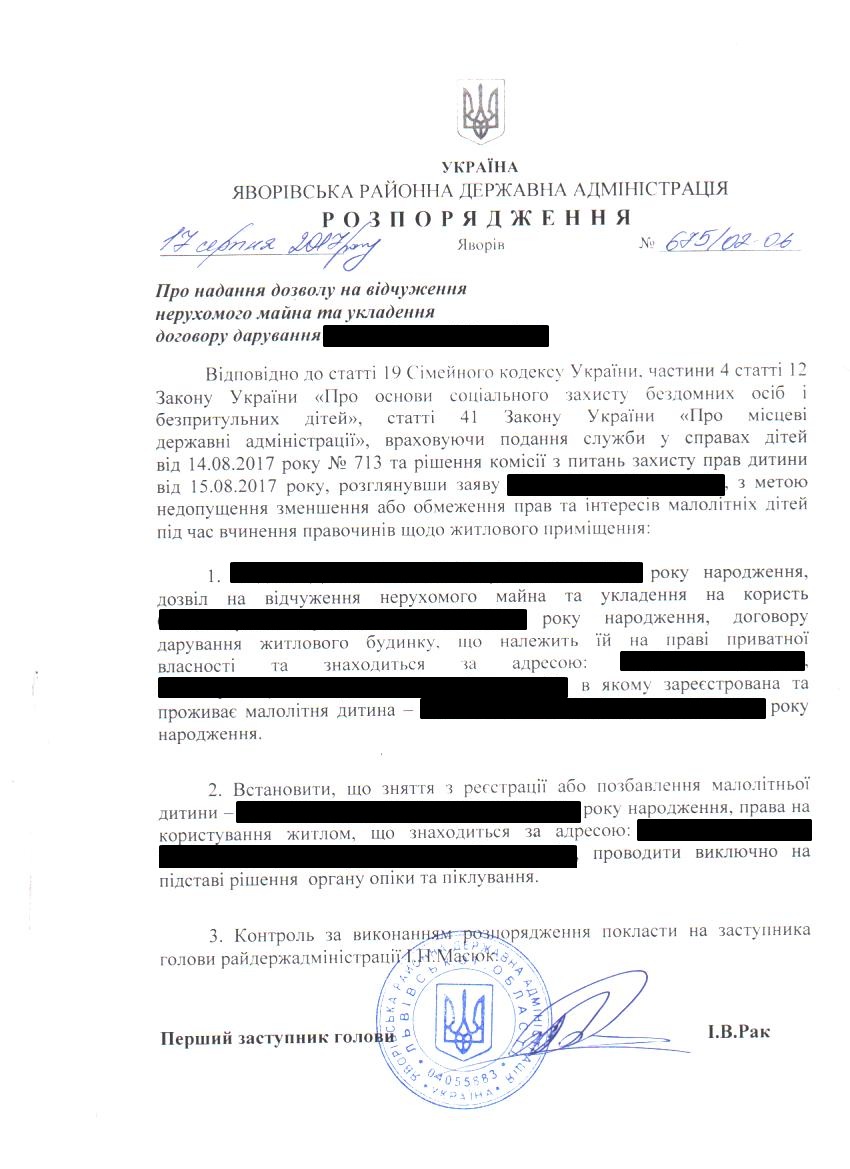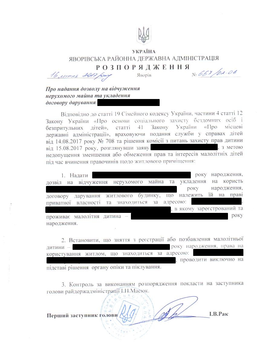 666/02-06 2017-08-21 Про надання дозволу на укладення договору дарування
