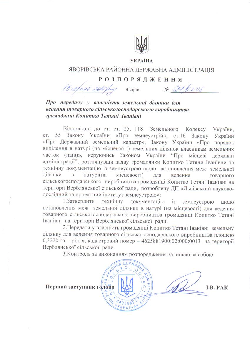 657/02-06 2017-08-18 Про передачу у власність земельної ділянки для ведення товарного сільськогосподарського виробництва громадянці Копитко Тетяні Іванівні