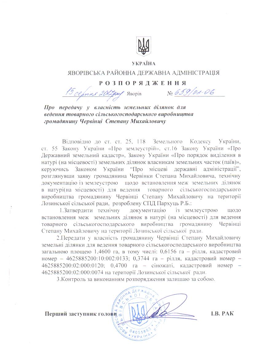 659/02-06 2017-08-18 Про передачу у власність земельних ділянок для ведення товарного сільськогосподарського виробництва громадянину Червінці Степану Михайловичу