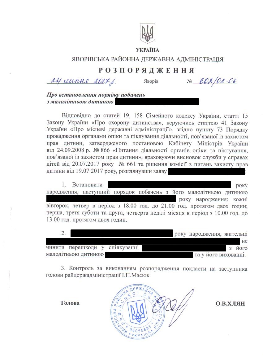 602/02-06 2017-07-28 Про встановлення порядку побачень з малолітньою дитиною