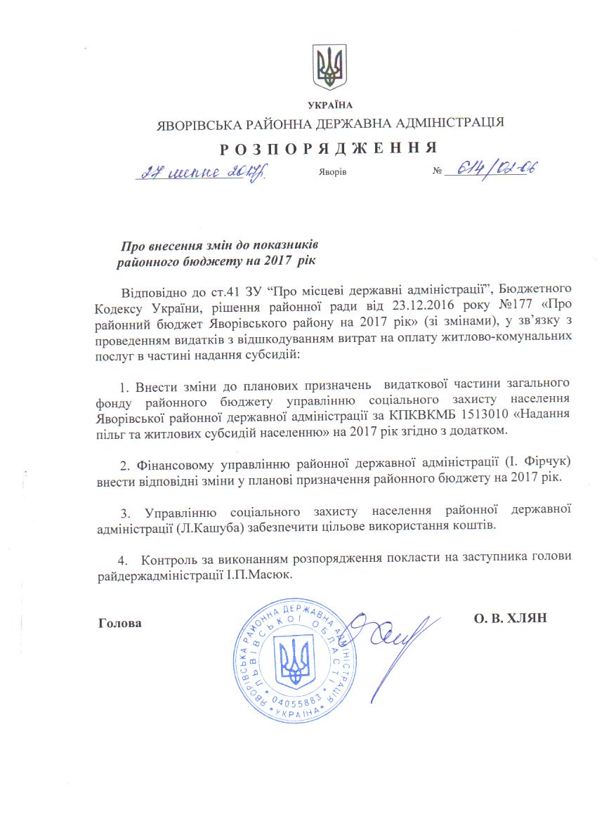 614/02-06 2017-07-31 Про внесення змін до показників районного бюджету на 2017 рік