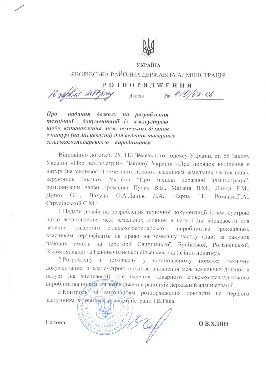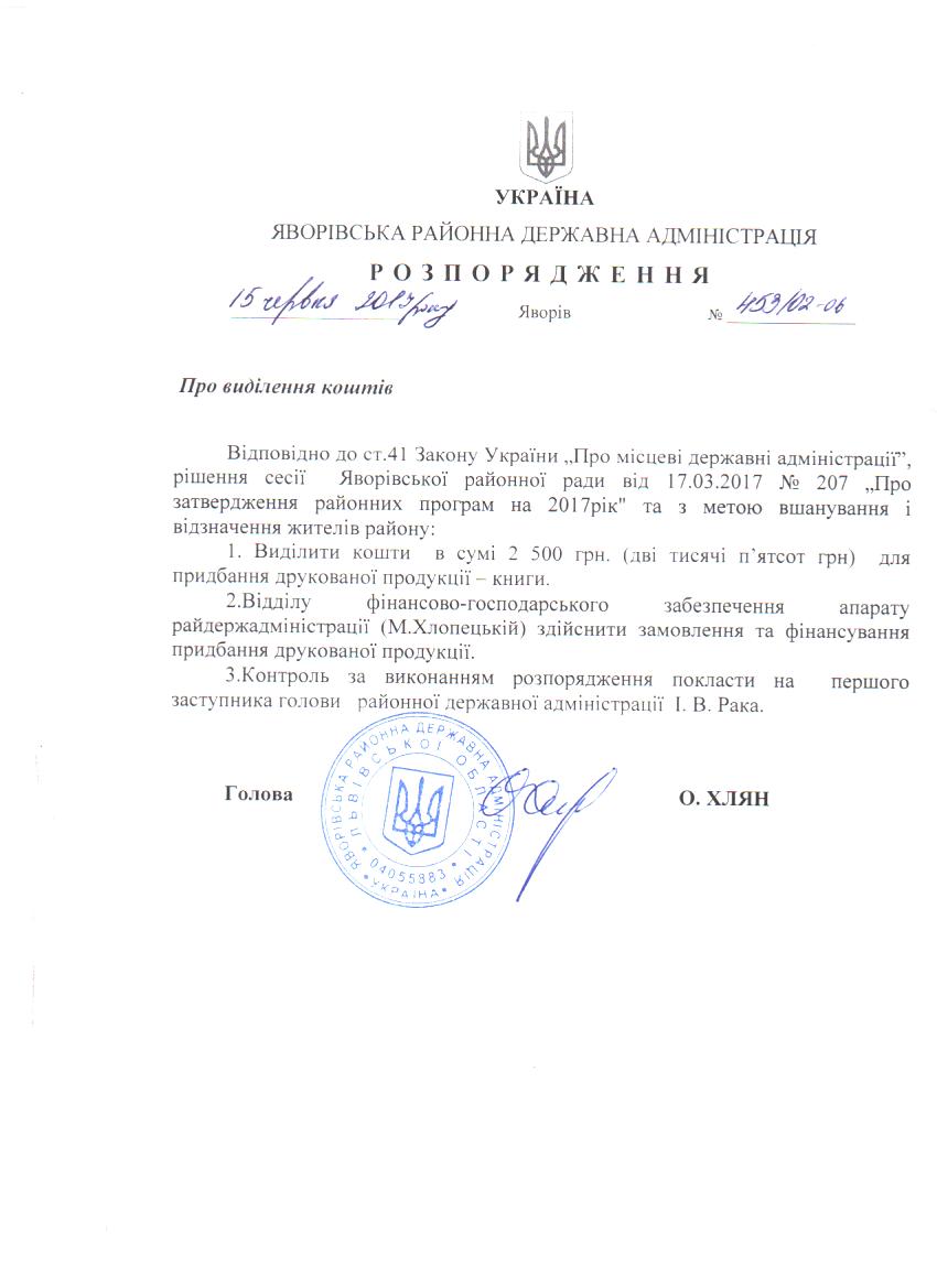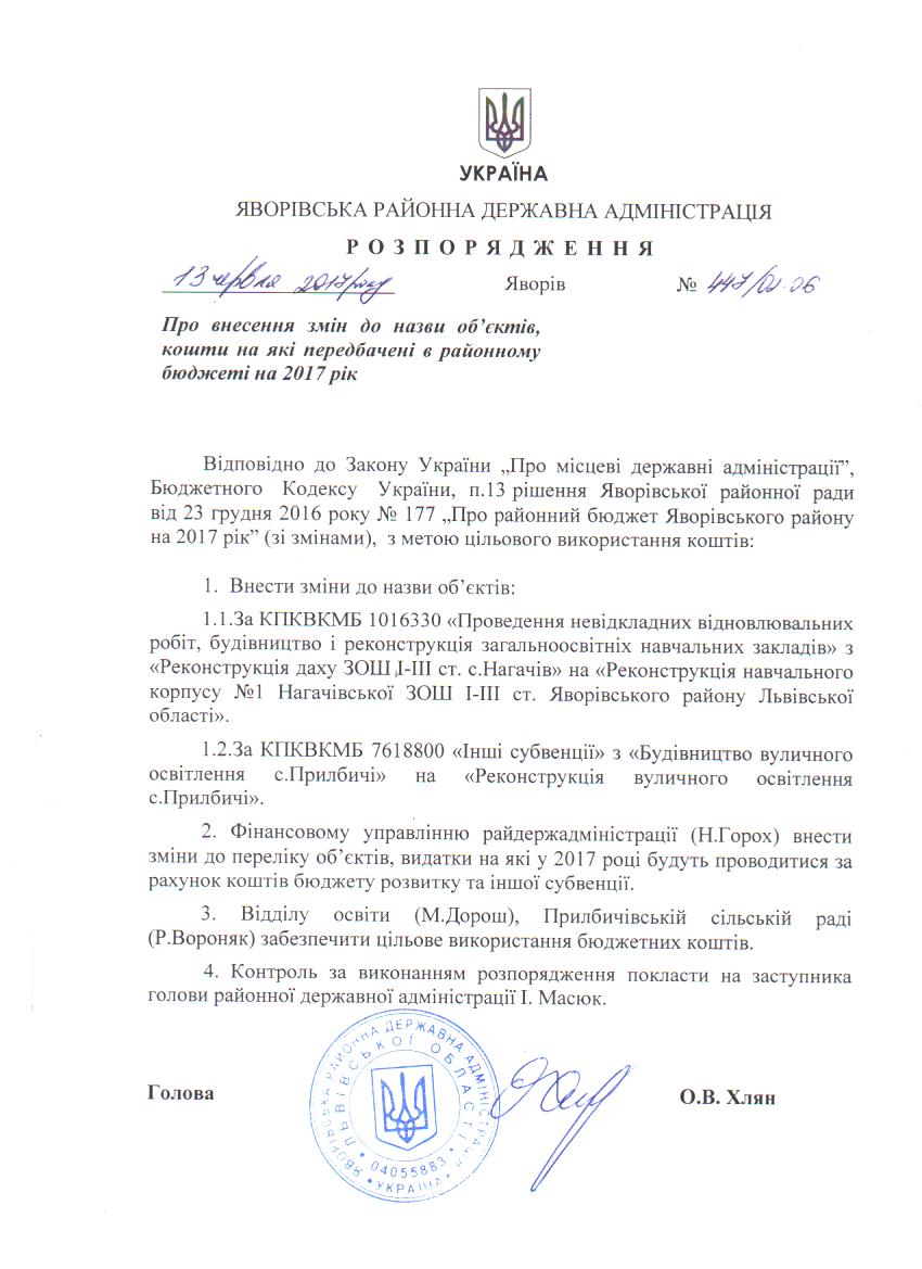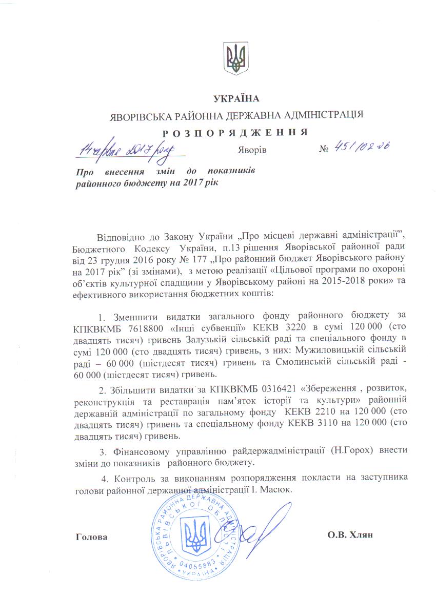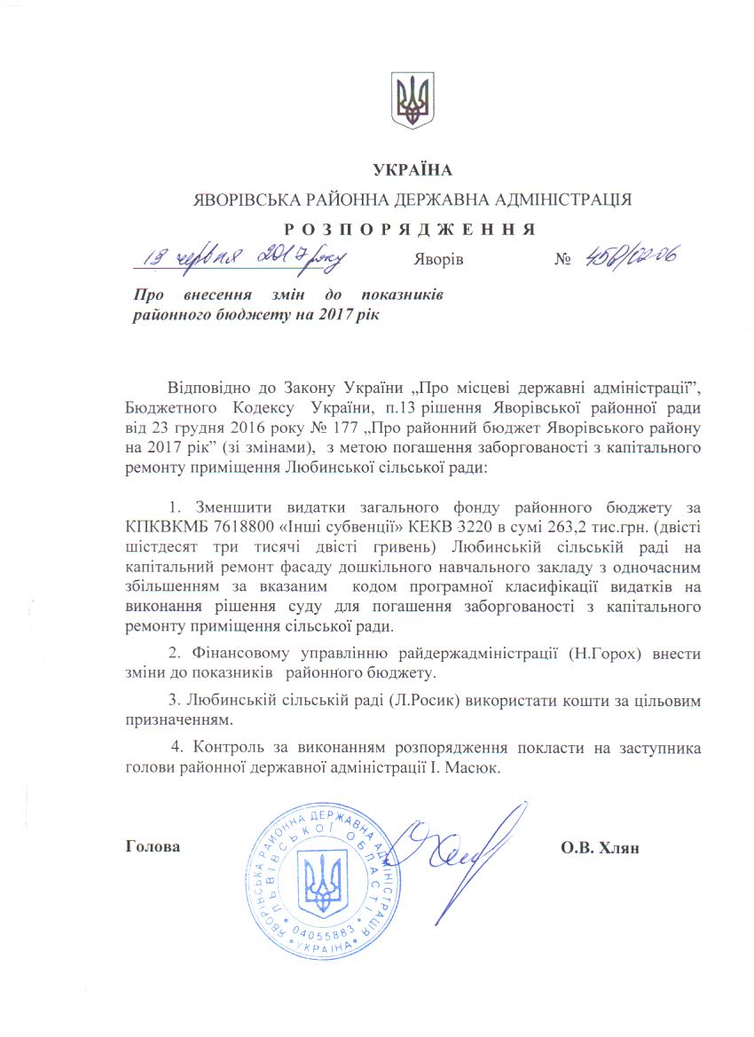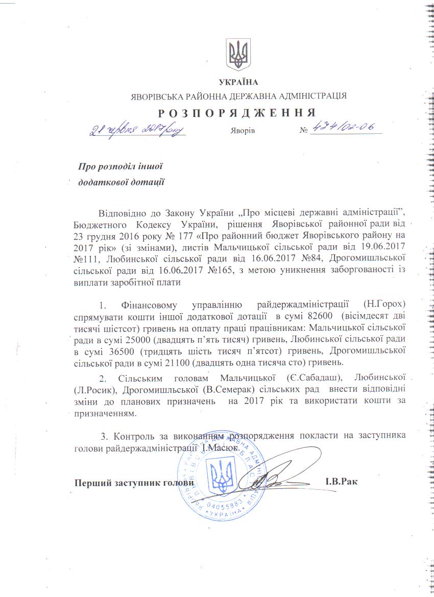 430/02-06 2017-06-12 Про внесення змін до розпорядження голови Яворівської райдержадміністрації від 28.02.2011 року №73