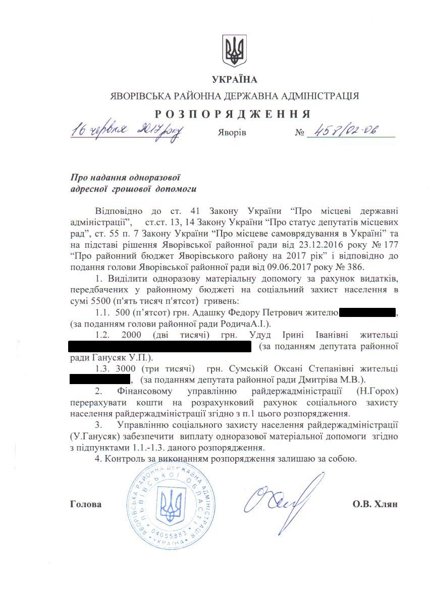 458/02-06 2017-06-22 Про надання одноразової адресної грошової допомоги