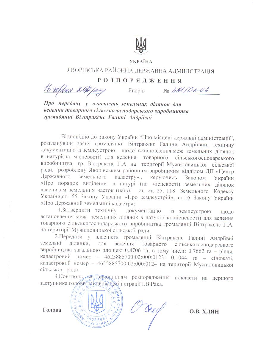 461/02-06 2017-06-22 Про передачу у власність земельних ділянок для ведення товарного сільськогосподарського виробництва громадянці Вілтракєнє Галині Андріївні