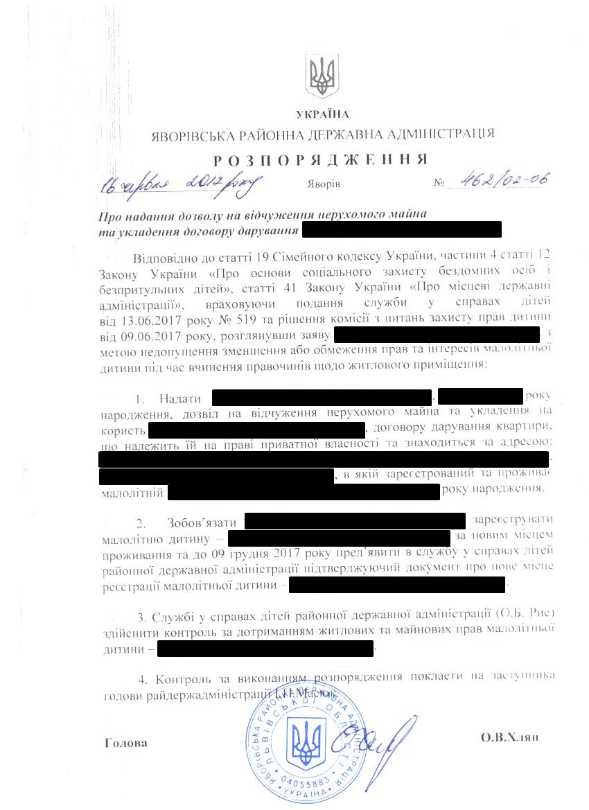 462/02-06 2017-06-22 Про надання дозволу на відчуження нерухомого майна та укладення договору дарування