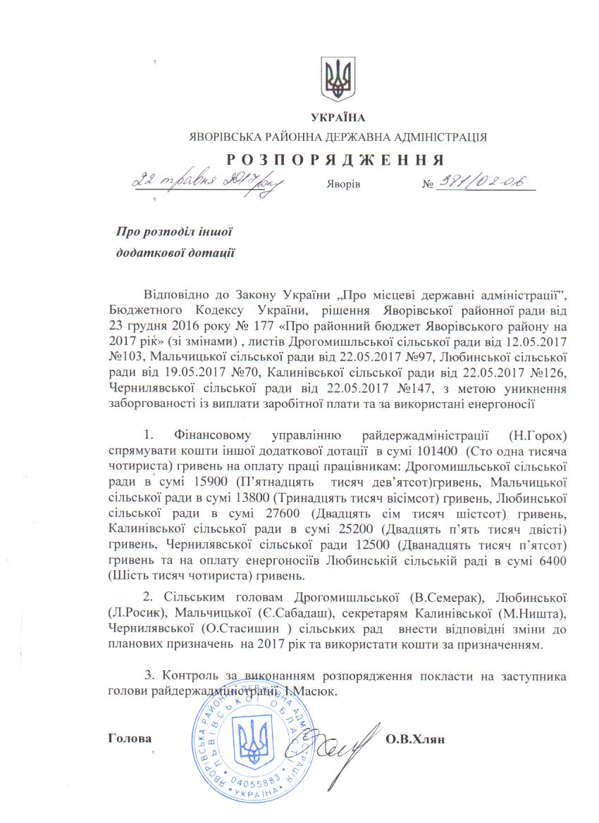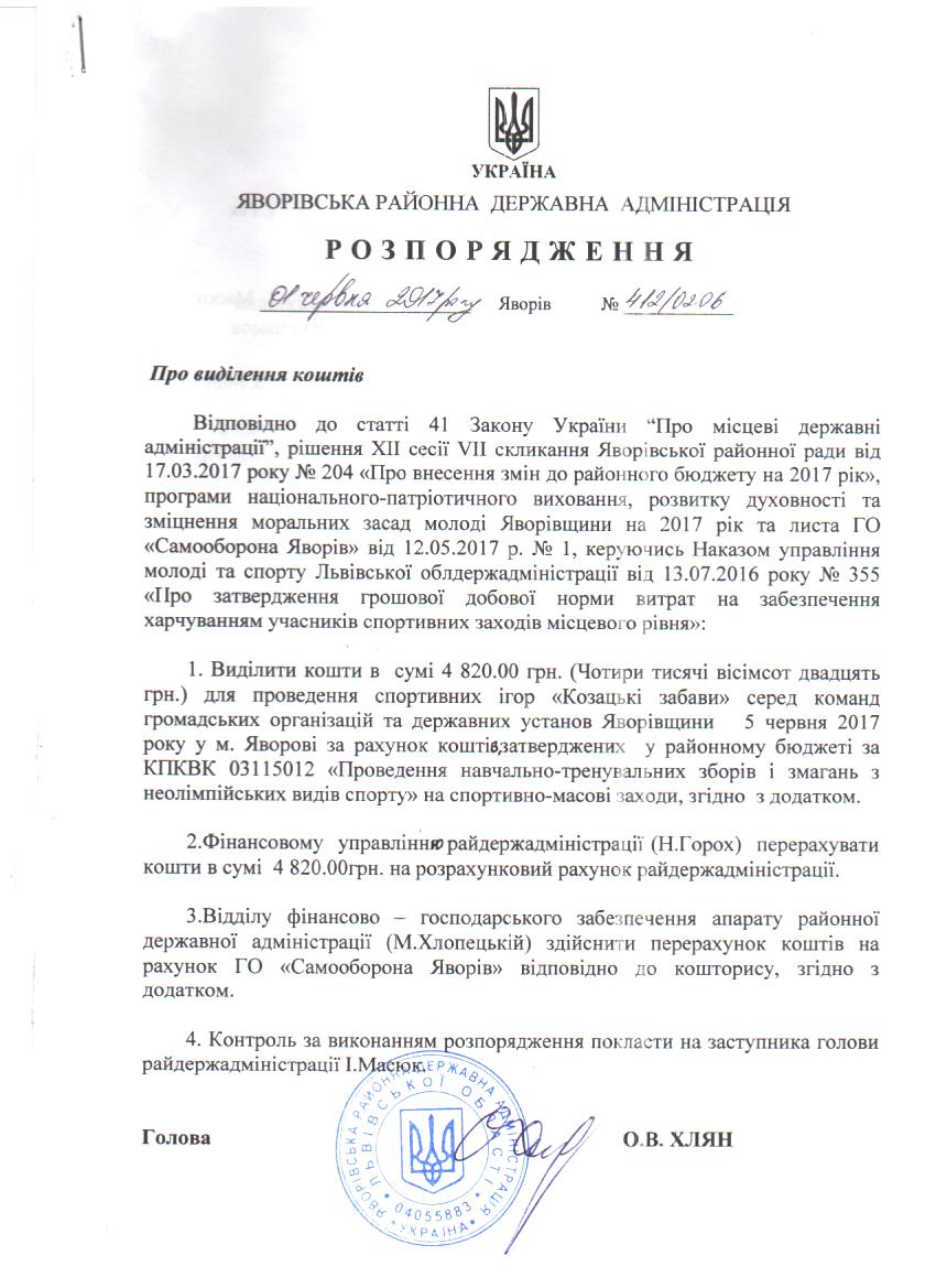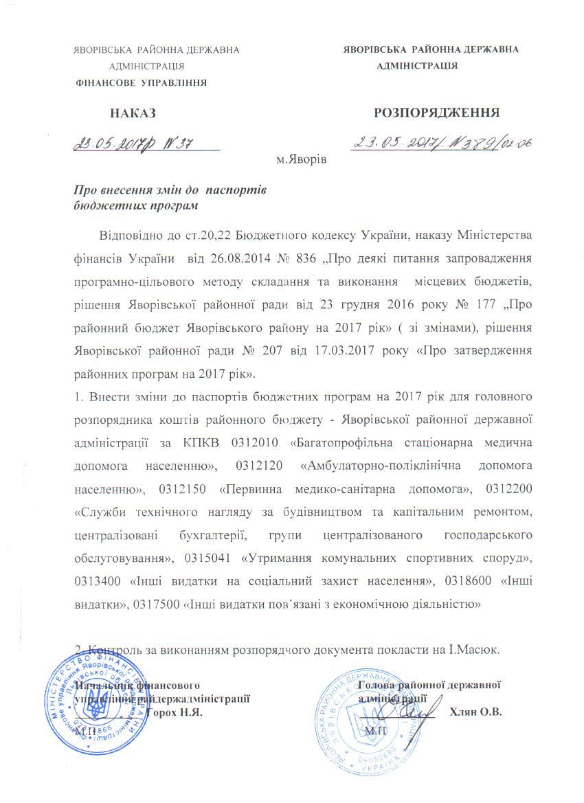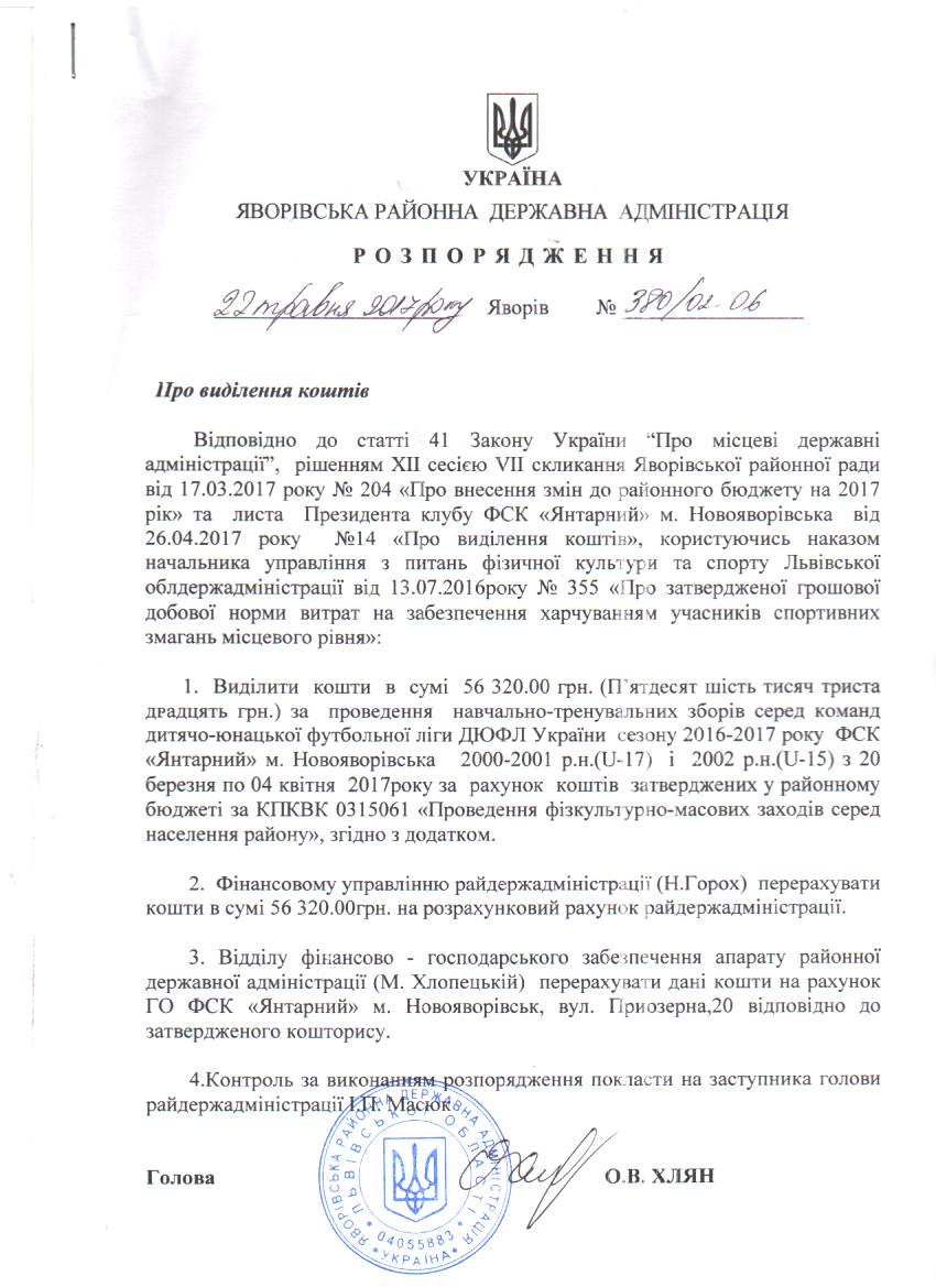 379/02-06 2017-05-26 Про виділення коштів Федерації футболу Яворівського району