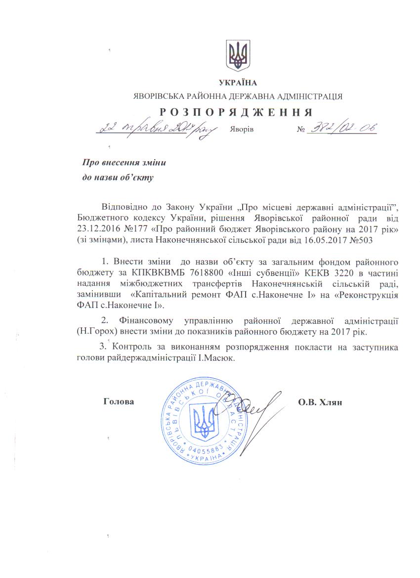 377/02-06 2017-05-26 Про виділення коштів Федерації футболу Яворівського району