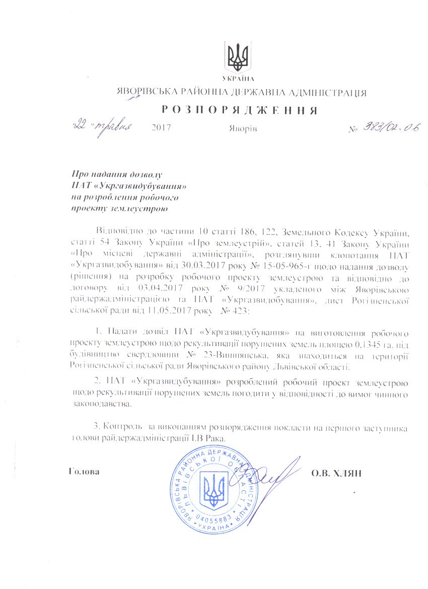 383/02-06 2017-05-26 Про надання дозволу ПАТ "Укргазвидобування" на розроблення робочого проекту землеустрою