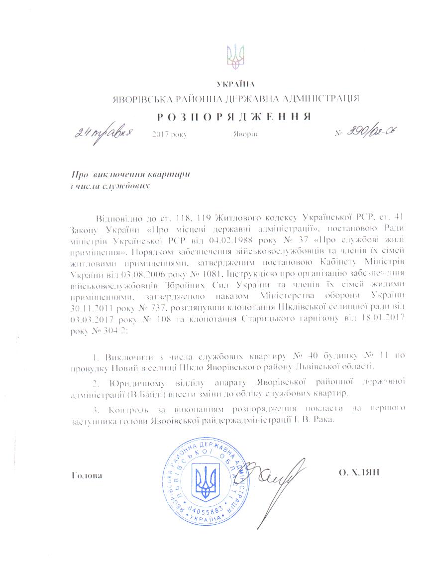 390/02-06 2017-05-29 Про виключення квартири з числа службових