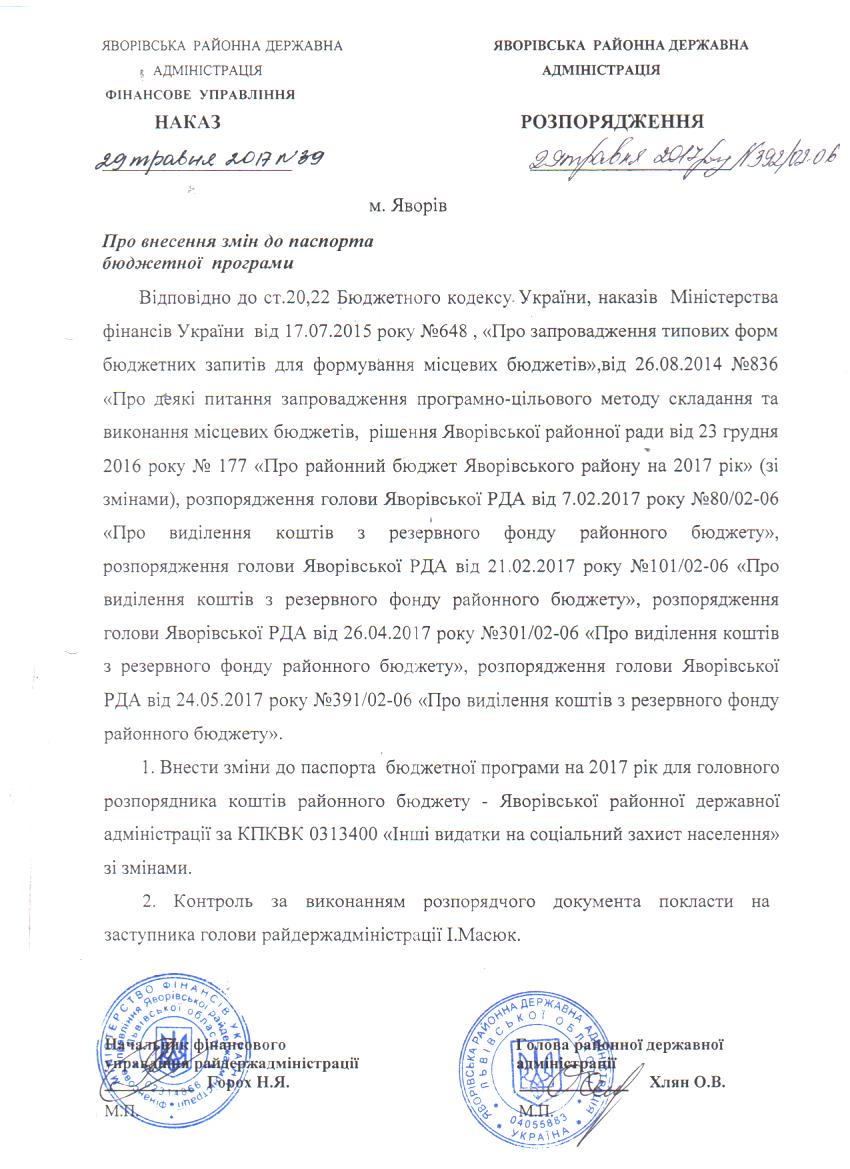 392/02-06 2017-06-02 Про внесення змін до паспорта бюджетної програми