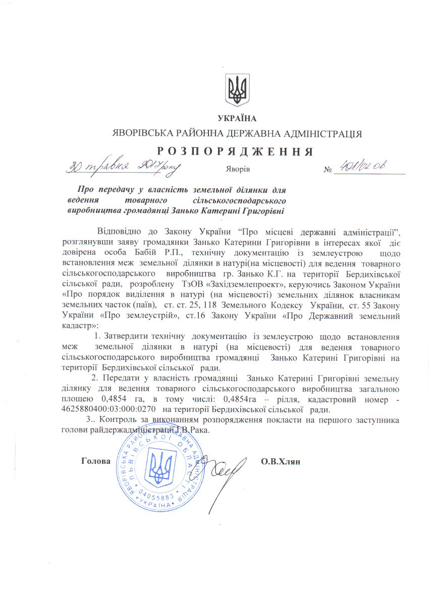 401/02-06 2017-06-02 Про передачу у власність земельної ділянки для ведення товарного сільськогосподарського виробництва громадянці Занько Катерині Григорівні