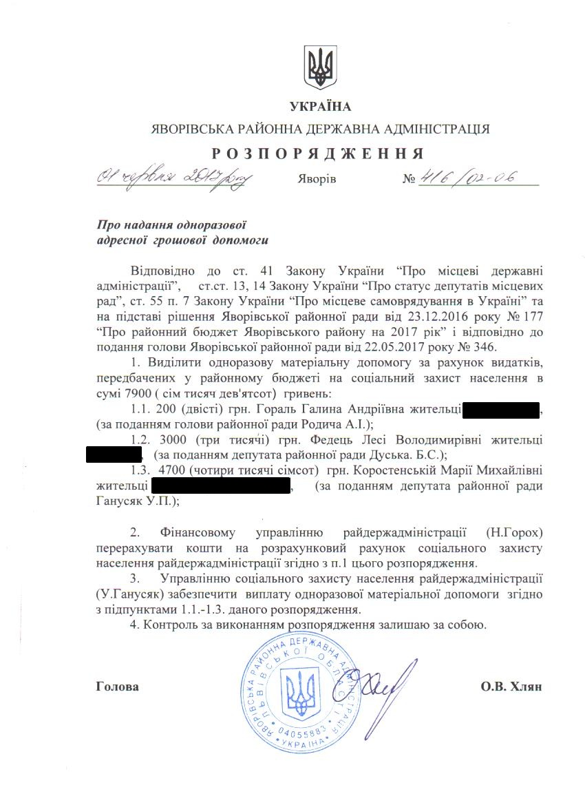 416/02-06 2017-06-06 Про надання одноразової адресної грошової допомоги