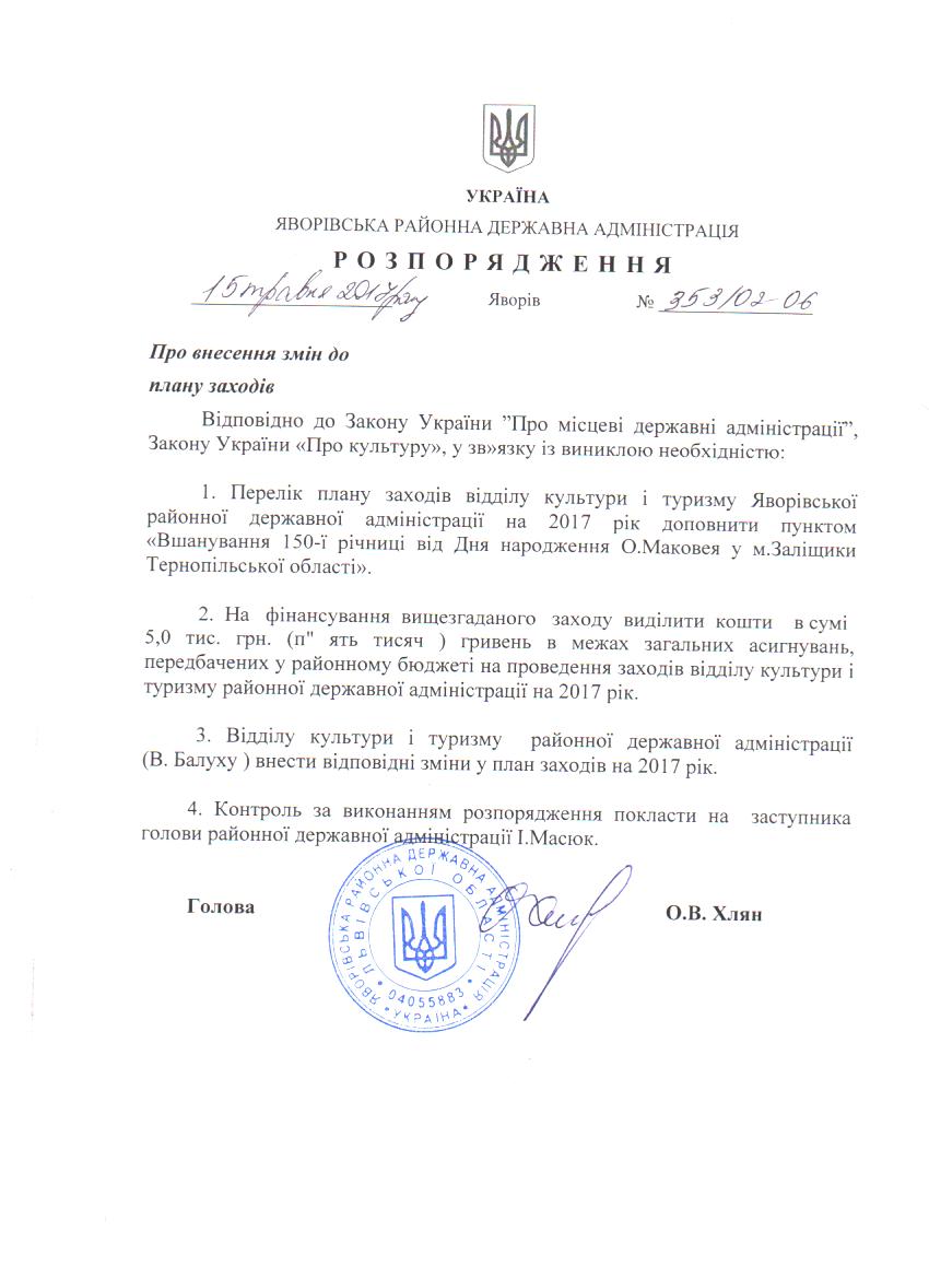 353/02-06 2017-05-15 Про внесення змін до плану заходів