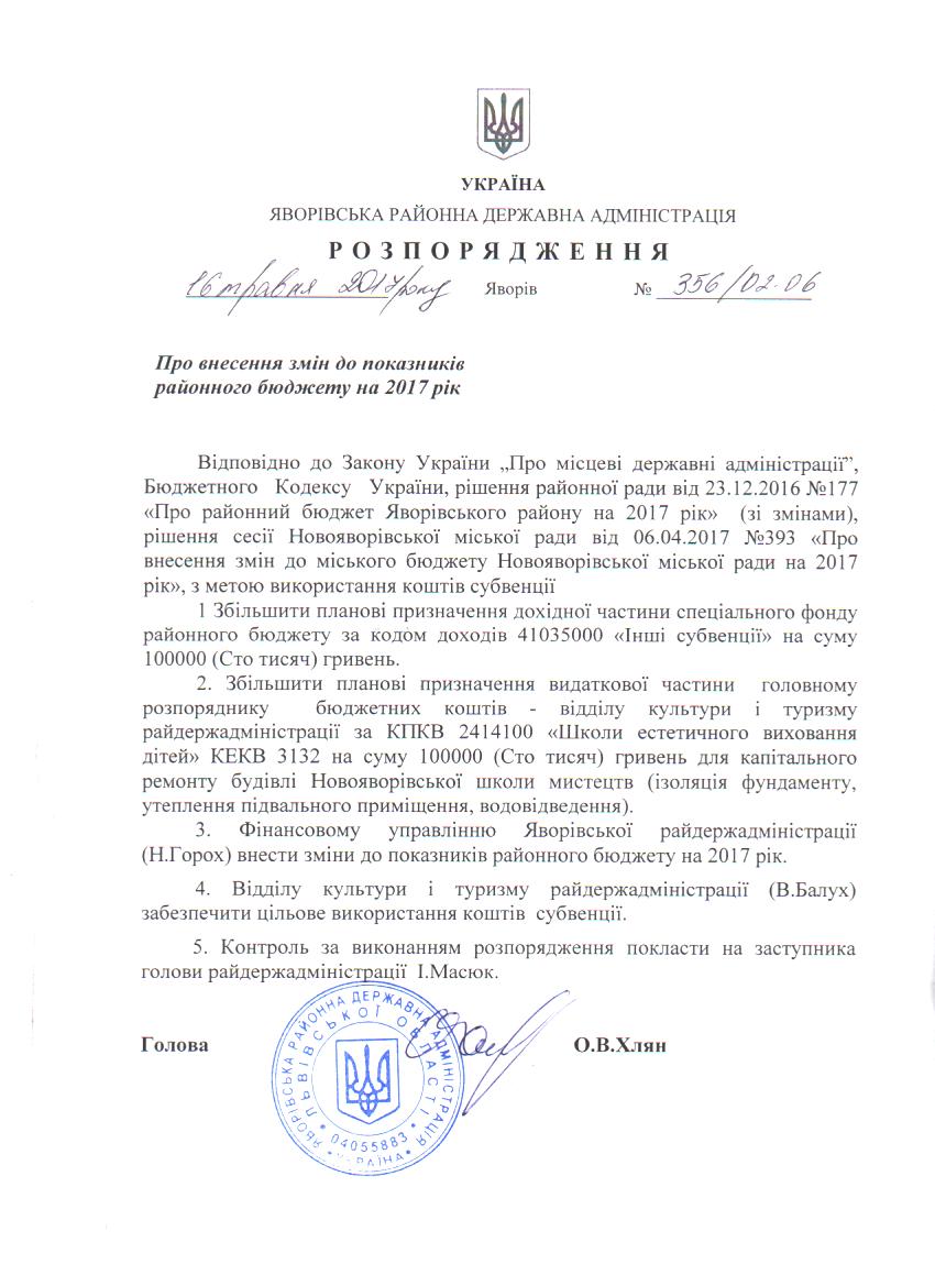 356/02-06 2017-05-19 Про внесення змін до показників районного бюджету на 2017 рік