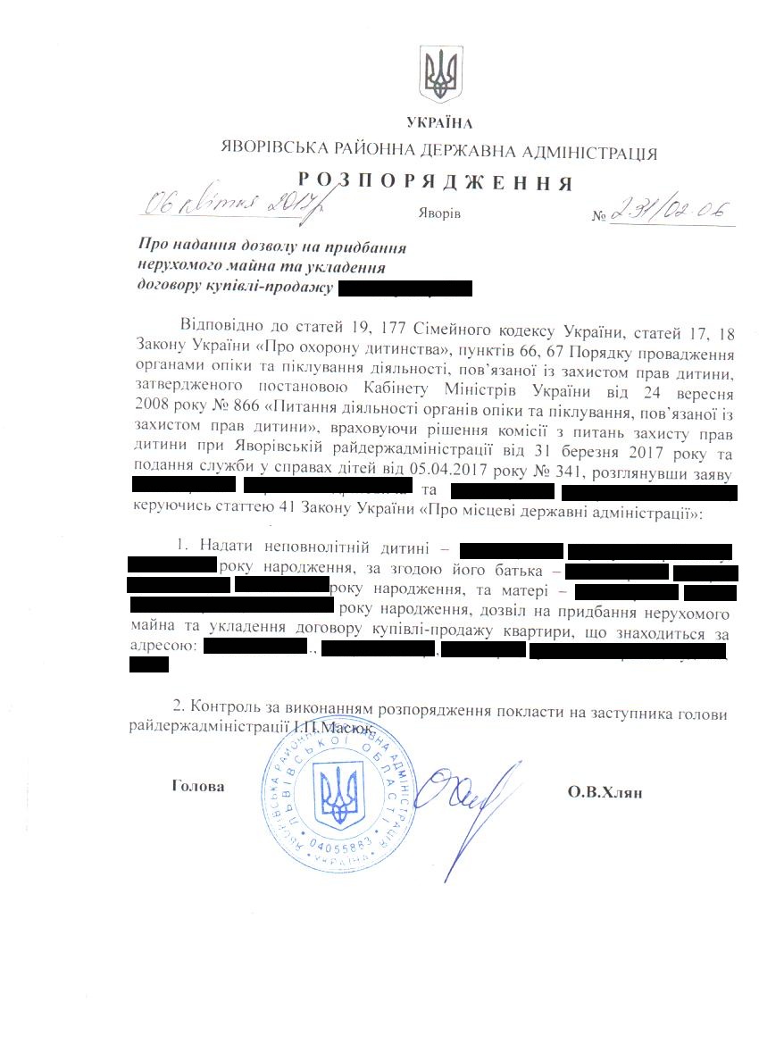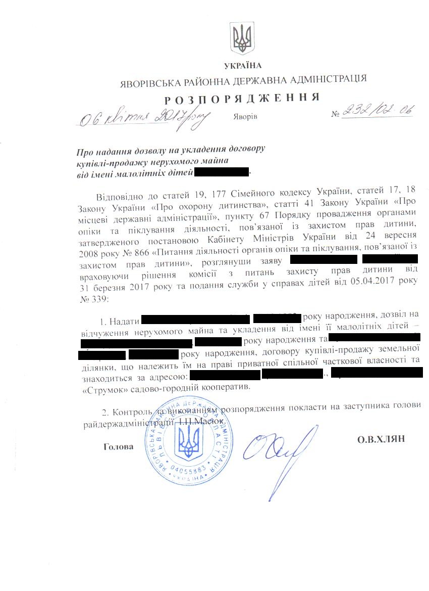 232/02-06 2017-04-10 Про надання дозволу на укладення договору купівлі-продажу нерухомого майна від імені малолітніх дітей