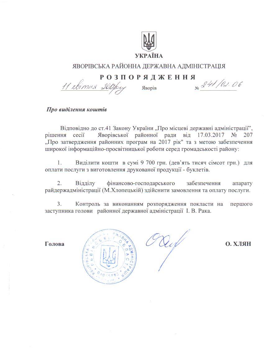 241/02-06 2017-04-18 Про виділення коштів