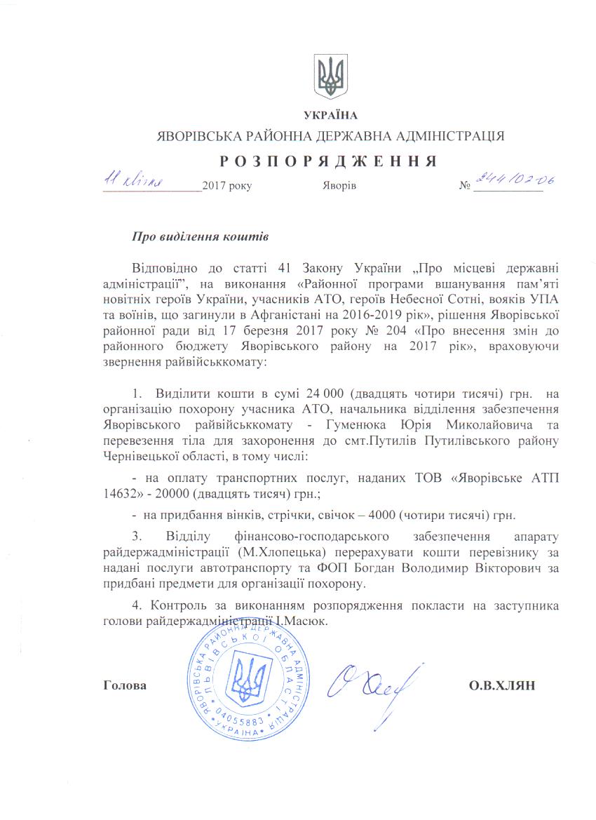 244/02-06 2017-04-18 Про виділення коштів